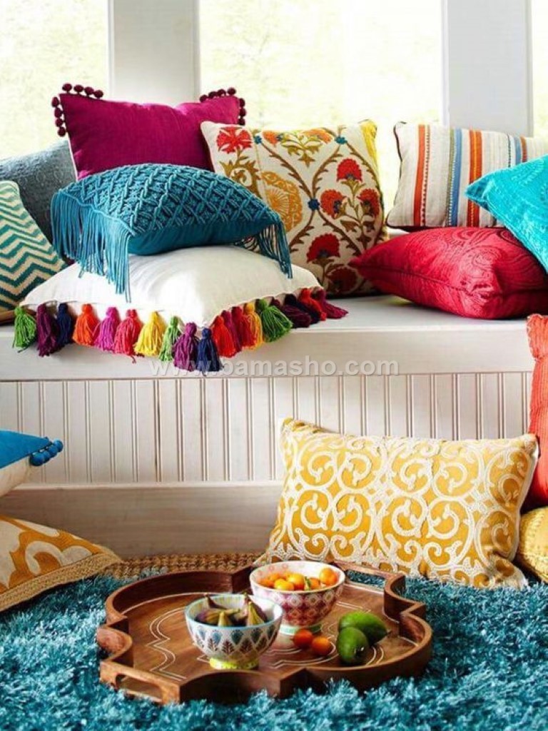 13. Bày vô số gối trên ghế ngồi phòng khách, trải thảm lông dày bên dưới, cách trang trí phòng khách mùa đông này còn nổi bần bật với những gam màu nóng, lạnh đan xen. Phòng khách nhà bạn có điểm nhấn vô cùng ấn tượng và đặc biệt rất ấm áp ngay khi nhìn vào.