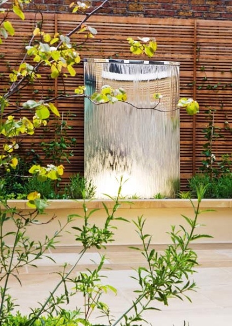 Tường nước ngày càng phổ biến trong cảnh quan sân vườn, với diện tích sân vườn lớn hay nhỏ đều có thể tạo lập một tường nước hiện đại sống động.