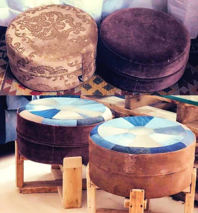 Góc nghỉ ngơi được may nệm từ những chiếc quần jeans đã cũ.