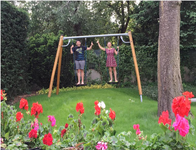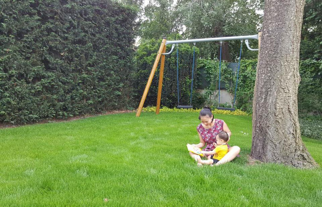Thu Minh cùng con trai đã có những khoảnh khắc yên bình bên nhau cùng vui chơi tại khu vườn nhà mình.