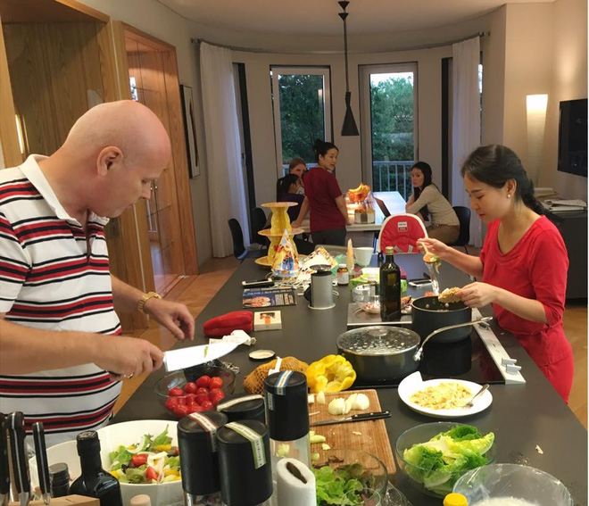 Trong những bữa tiệc này, người chồng doanh nhân tài năng trên thương trường của Thu Minh còn khiến nhiều người ghen tị với vợ khi tự tay vào bếp chuẩn bị đồ ăn.