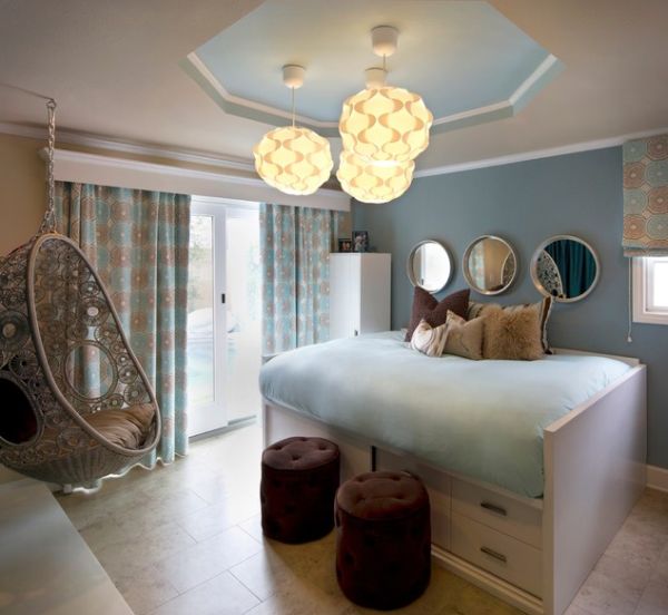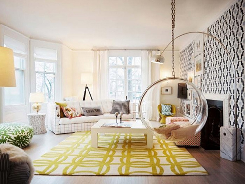 Không khô cứng như những chiếc ghế thông thường, với chiếc ghế treo đặt trong phòng khách thế này bạn vừa có thể nói chuyện, vừa có thể đung đưa vô cùng thú vị.