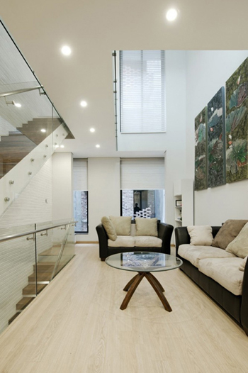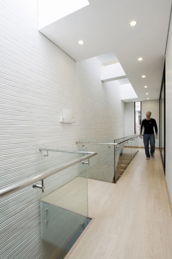 Tuy nhiên, bằng sự sáng tạo các kiến trúc sư đã khoác cho ngôi nhà một bộ mặt, sức sống hoàn toàn mới lạ. Cầu thang được thiết kế chạy dọc theo một bên. Sự kết hợp độc đáo giữa cầu thang gỗ và hành lang bằng kính trong suốt cứ tiếp nối nhau, trở thành một không gian sống thoáng đãng, sáng sủa.