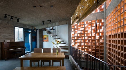 Nhưng bằng các giải pháp rất thiết thực như tận dụng ánh sáng thiên nhiên tối đa, sử dụng giếng trời và độ lệch giữa các tầng, các kiến trúc sư đã khiến ngôi nhà này mang một diện mạo tiện nghi và đẹp đến ngạt thở.