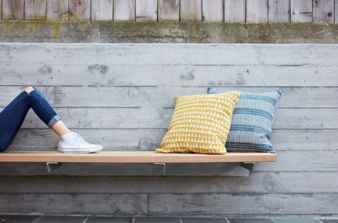 Ghế được đóng bằng kệ sắt chắc chắn, thiết kế thêm mảnh gỗ để tạo ghế ngồi đẹp xinh và gọn gàng cho khoảng sân sau nhỏ nhắn.