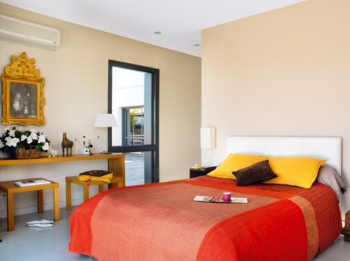 Đối với phòng ngủ, màu đỏ từ chiếc đèn ngủ, miếng nệm đầu giường hay bộ chăn gối cũng sẽ mang lại sự ấm áp cho không gian sống của bạn. Bạn cũng có thể kết hợp màu đỏ với các họa tiết hoa văn và màu sắc khác để đem lại cái nhìn mềm mại và đẹp mắt cho không gian sống.
