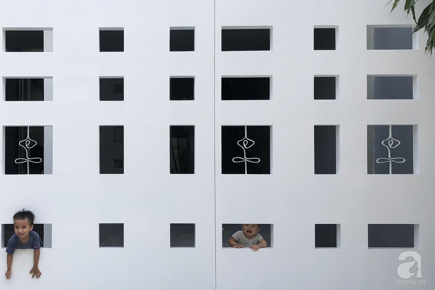Ngôi nhà tạo ấn tượng đặc biệt ngay từ mặt tiền với những ô cửa vô cùng ấn tượng.