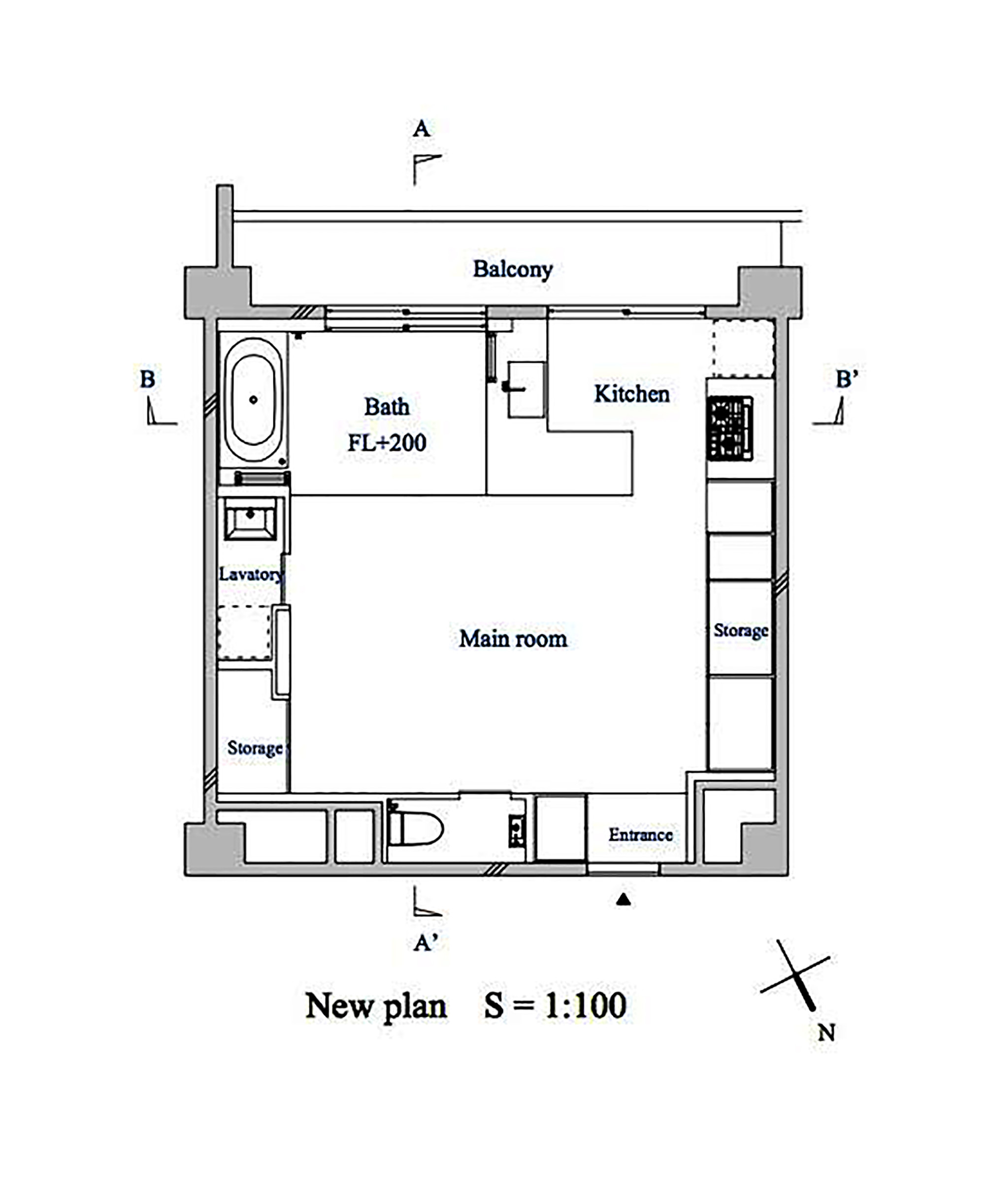 Căn hộ chung cư cũ gồm có 2 phòng ngủ nhỏ, bếp ăn, phòng tắm. Với hiện trạng này căn nhà rất chật, và thiếu ánh sáng. Vì nhà có hai con nhỏ nên chủ nhà muốn có thêm không gian chơi đùa cho con, phòng tắm cũng rộng hơn để cùng lúc có thể tắm nhiều người.