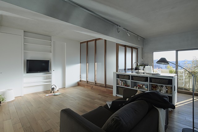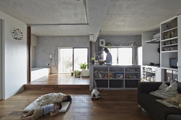 Bằng sự sáng tạo tài tình, kiến trúc sư người Nhật Bản Takeshi Shikauchi đã giúp cặp vợ chồng trẻ cùng hai con nhỏ cải tạo căn hộ chung cư cũ nát 40m2 thành không gian sống rộng thoáng và tràn ngập ánh sáng.